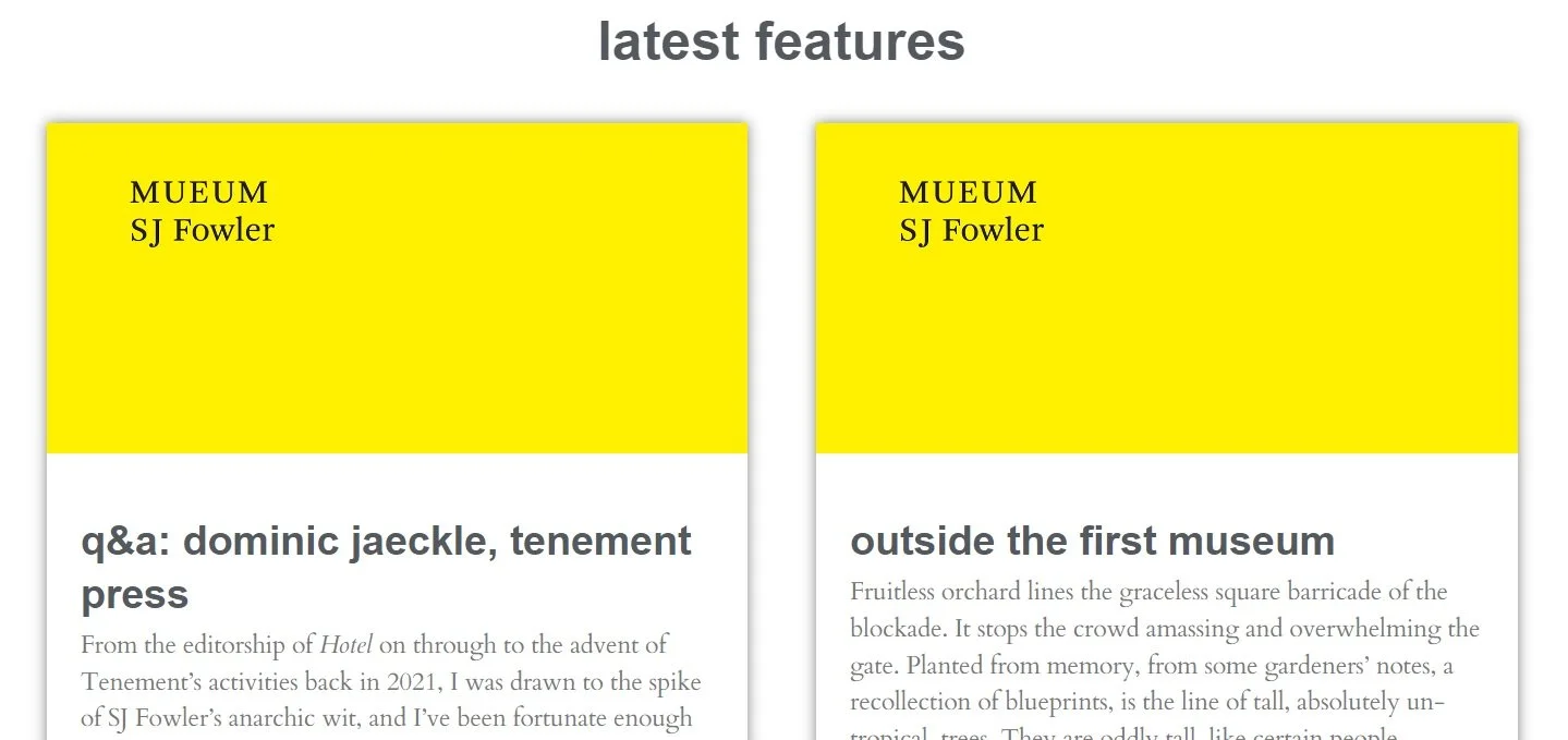Resonance Extra will broadcast my novella MUEUM tomorrow Saturday October 1st at 1pm as an audio book. extra.resonance.fm/episodes/tenement-press-presents-sj-fowler-s-mueum-i-of-iv-2022-10-01 It is the first of four parts, recorded in their studio chapel in South London, with parts 2, 3, 4 broadcast on November 5th, December 3rd and January 7th respectively.